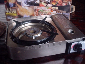 イワタニ/カセットフーBO− | 04年頃購入。ガスカートリッジ式カセットコンロ。ガスはコンビニでも購入できる汎用タイプなので安心。また安く購入できるので経済的。特にこの「BOー」は火力が大きいのでアウトドアでも家でも大活躍です。うちでは釣った魚を天ぷらにするときに使っています。めちゃくちゃうまいですよ。安定性も○、シンプルなステンレスの外観も○。アウトドア用のケース付のものもあるようです。満足度☆☆☆☆ |