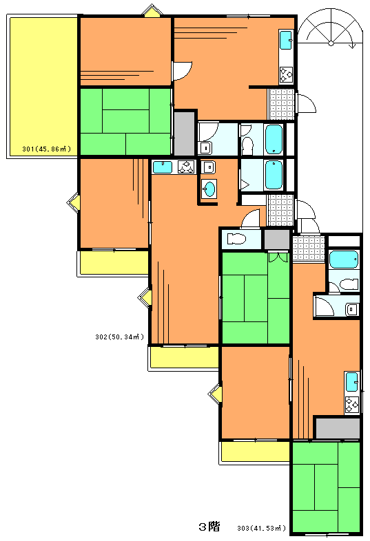 ☆201/202/302号室の浴室・トイレ・洗面台は新品リフォーム!