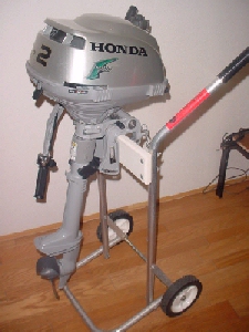 ホンダ/BF2D | 05年5月購入。2馬力船外機。船検・免許不要の2馬力船外機の中で唯一の4サイクル機。メンテナンスが楽でイイです。空冷なので短時間なら陸でエンジンかけれます。2馬力とはいっても10ftのポータボートで沿岸で釣りをするくらいであれば非力さは感じません。予備のガソリン1Lを携行してますが1Lの内臓タンクで1日十分遊べます。2サイクル並に値段が安くなればなおいいと思います。満足度☆☆☆☆ |